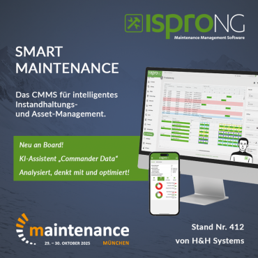 Besuchen Sie uns auf der Maintenance München am Stand von H&H Systems (Nr. 412) – und überzeugen Sie sich selbst, wie smart isproNG in Ihrem Unternehmen für reibungslose Abläufe sorgt.